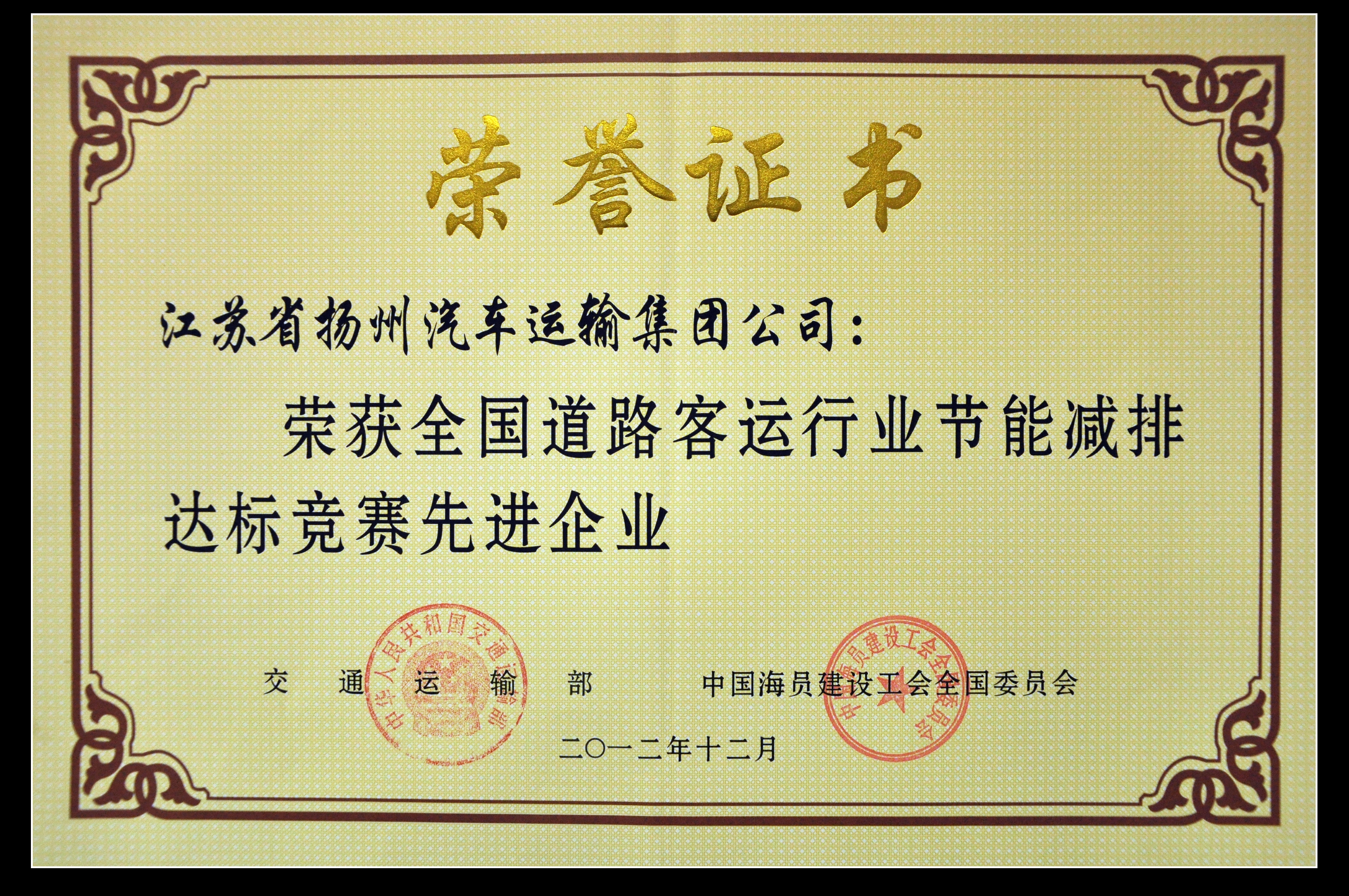 > 我司榮獲“全國道路客運(yùn)行業(yè)節(jié)能減排達(dá)標(biāo)競賽先進(jìn)企業(yè)”稱號