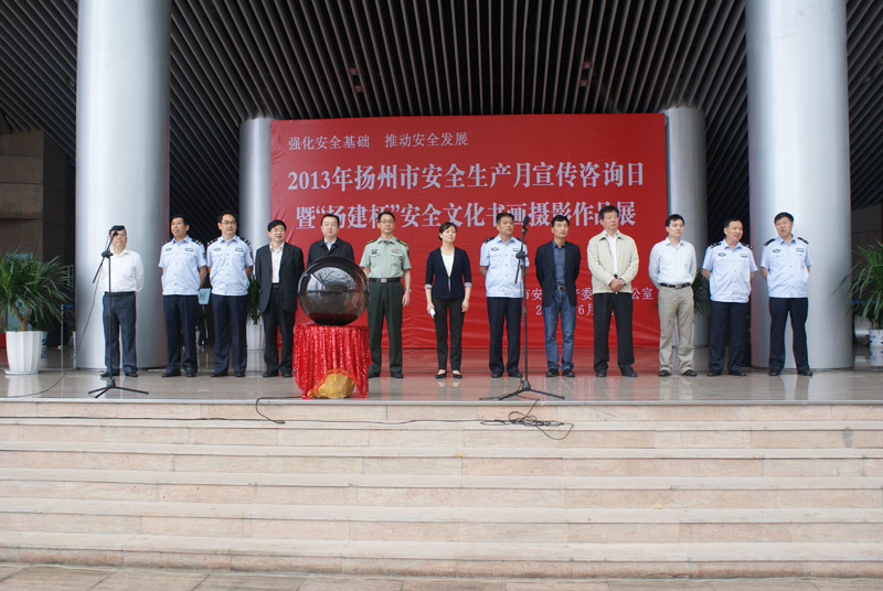 6月9日上午,2013年揚(yáng)州市“安全生產(chǎn)月”宣傳咨詢(xún)?nèi)蒸?ldquo;揚(yáng)建杯”安全文化書(shū)畫(huà)攝影作品展在市美術(shù)館北門(mén)廣場(chǎng)舉辦。副市長(zhǎng)張寶娟出席了當(dāng)天的活動(dòng),并和廣大市民一同參觀安全文化書(shū)畫(huà)攝影作品。市安監(jiān)局、交通局、公安局、建設(shè)局、氣象局、質(zhì)監(jiān)局等單位領(lǐng)導(dǎo),以及部分駐揚(yáng)單位職工代表,共計(jì)400余人參加了活動(dòng)。