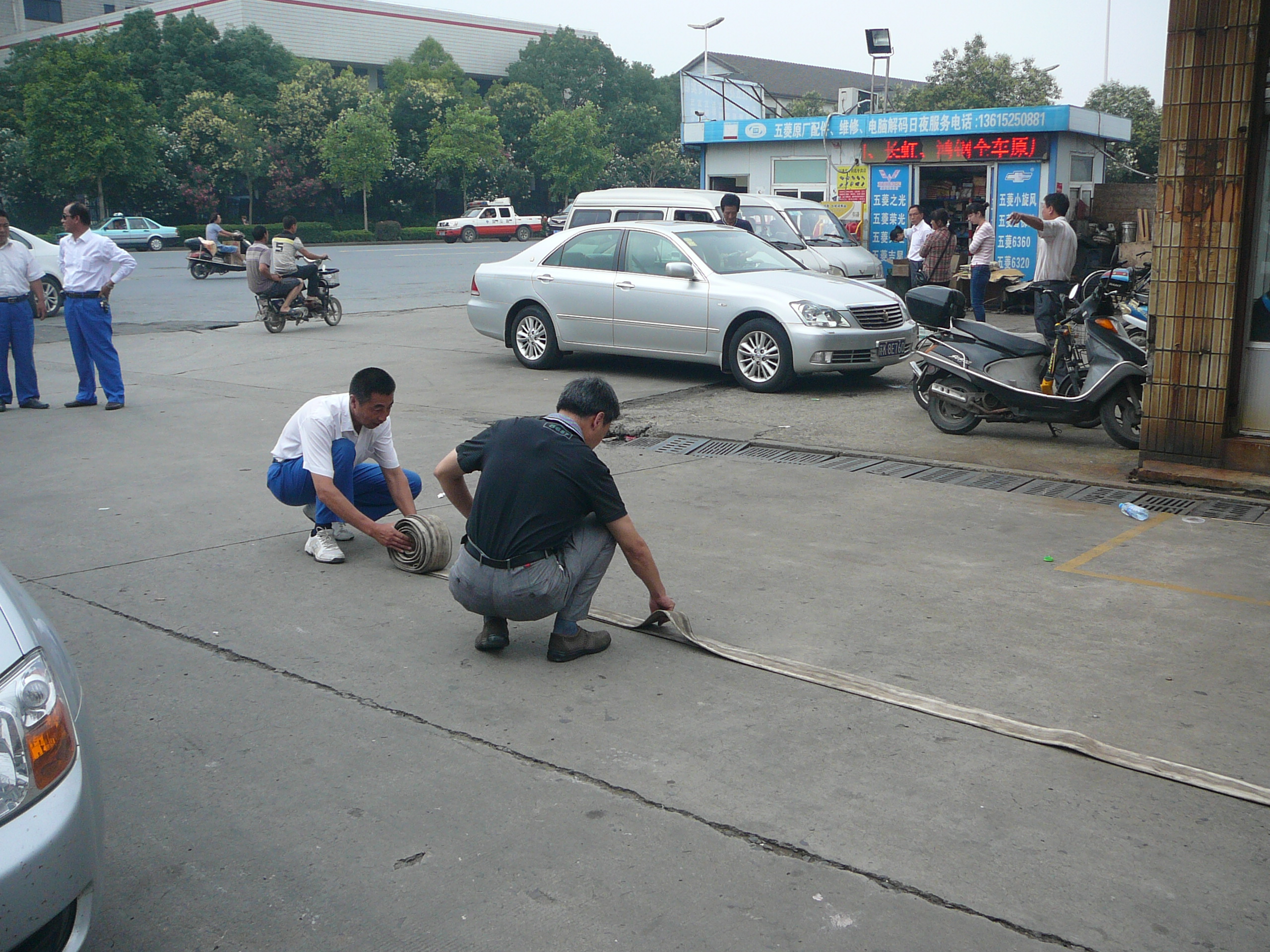 在活動(dòng)現(xiàn)場,消防隊(duì)員每兩人一組,進(jìn)行撒水帶、連接消防接口等方法的演練。隊(duì)員們一絲不茍地按照工作流程進(jìn)行著操作,并熟練地掌握了消防栓連接操作要領(lǐng),即用手卡住水帶,小手臂用力,向前方拋出四十五度左右時(shí),除拇指和食指外,其余手指自然松開,水帶主體拋出,手中只留兩個(gè)接口;將其中一個(gè)接口放在地上或就地在消防栓栓口,消防栓出水,分水器口;拿起另一個(gè)接口迅速向前方跑去,邊跑邊拿出水槍進(jìn)行連接。