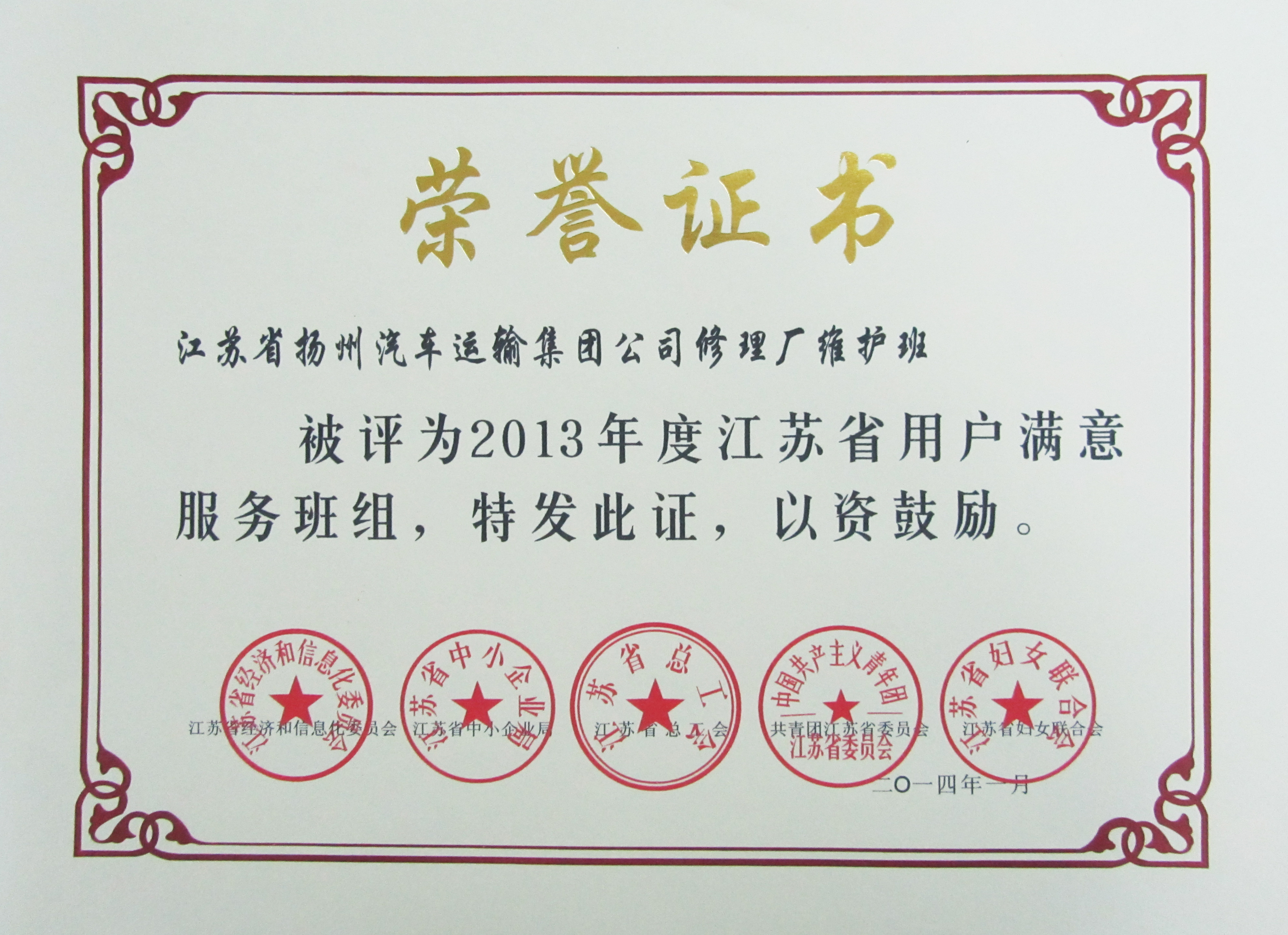 日前,由江蘇省經(jīng)濟和信息化委員會、江蘇省總工會、江蘇省中小企業(yè)局等五家單位聯(lián)合開展的2013年度創(chuàng)建“用戶滿意服務(wù)”活動評審結(jié)果揭曉,我司修理廠維護班榮獲2013年度江蘇省“用戶滿意服務(wù)”班組,快客分公司殷鑫同志榮獲2013年度江蘇省“用戶滿意服務(wù)”明星稱號。