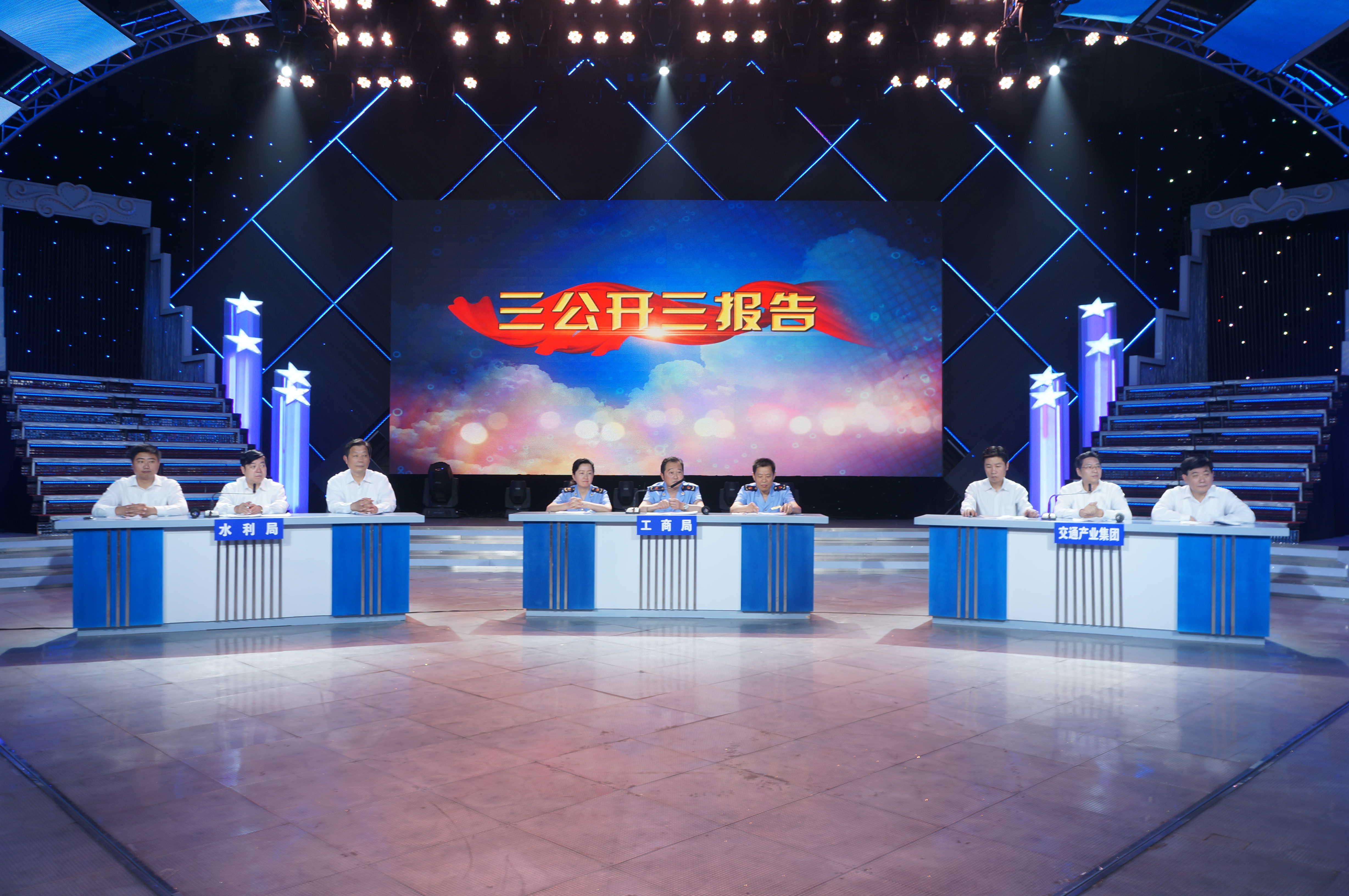 6月29日上午,市交通產(chǎn)業(yè)集團(tuán)董事長、黨委書記、總經(jīng)理周正權(quán),集團(tuán)公司總經(jīng)理、黨委書記吳忠俊和市公交集團(tuán)領(lǐng)導(dǎo)和走進(jìn)廣電中心電視直播現(xiàn)場,與市水利局、工商局共同接受“三公開、三報(bào)告”考評打分。