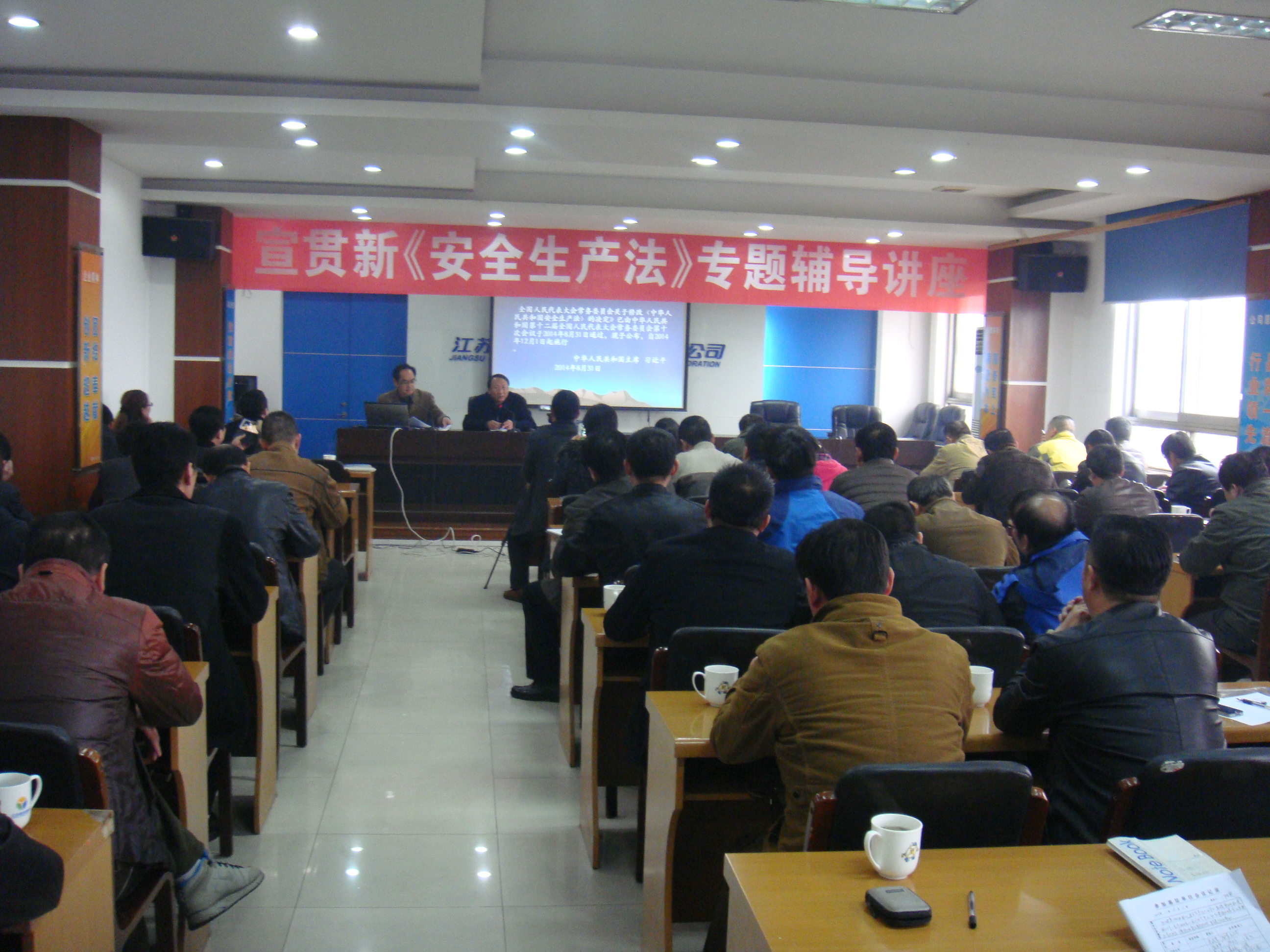 為認(rèn)真做好新《安全生產(chǎn)法》的學(xué)習(xí)、宣傳、貫徹和實(shí)施工作,進(jìn)一步落實(shí)安全生產(chǎn)主體責(zé)任,預(yù)防和減少各類(lèi)事故的發(fā)生,切實(shí)做好隱患排查治理,全面提高企業(yè)安全生產(chǎn)管理水平,11月27日下午,市交通產(chǎn)業(yè)集團(tuán)在我司舉辦新《安全生產(chǎn)法》專(zhuān)題輔導(dǎo)講座,市交通產(chǎn)業(yè)集團(tuán)副總經(jīng)理王寧生主持并作重要講話(huà),集團(tuán)公司副總經(jīng)理談衛(wèi)國(guó)、總經(jīng)理助理萬(wàn)雷,各二級(jí)單位安管負(fù)責(zé)人、安全員和來(lái)自市交通產(chǎn)業(yè)集團(tuán)所屬的各單位分管安全領(lǐng)導(dǎo)、安全管理部門(mén)負(fù)責(zé)人、安全員共計(jì)100余人參加了講座。
