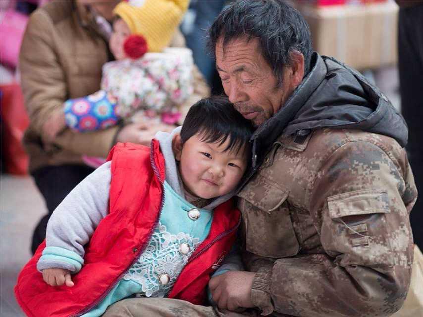圖二:小孫女依偎在爺爺懷里?吹贸鲂O女跟爺爺奶奶很親。