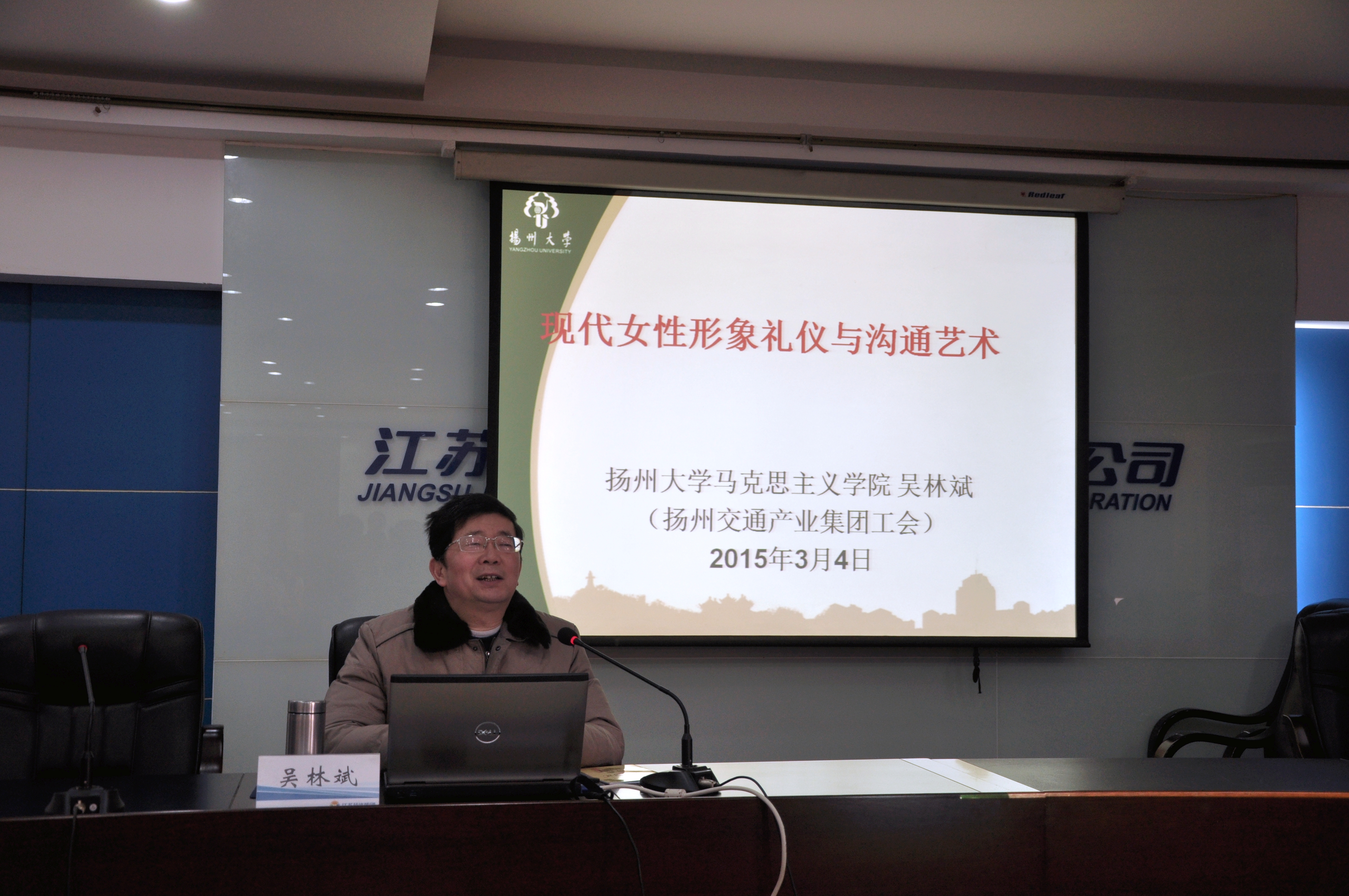 為迎接國(guó)際“三八”婦女節(jié)成立105周年,3月4日下午,市交通產(chǎn)業(yè)集團(tuán)工會(huì)聯(lián)合會(huì)邀請(qǐng)揚(yáng)州大學(xué)馬克思主義學(xué)院的吳林斌教授在我司七樓會(huì)議室舉辦“現(xiàn)代女性形象禮儀與溝通藝術(shù)”的專題講座,我司40余名女職工參加了講座。