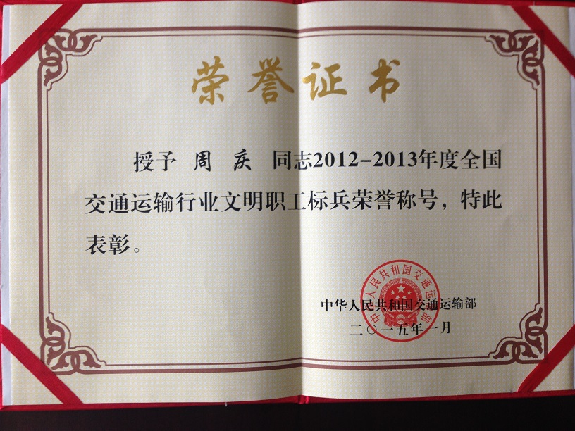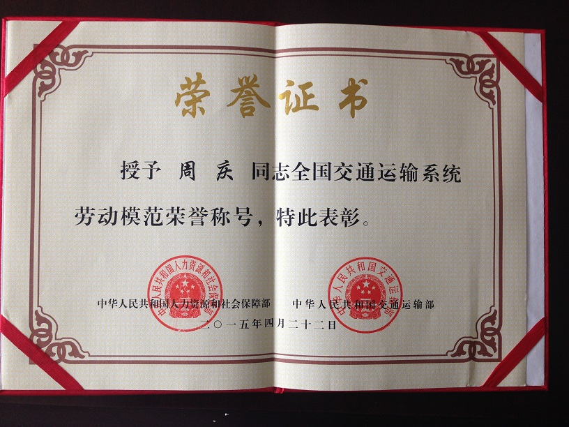 駕駛員周慶榮獲“全國(guó)交通運(yùn)輸系統(tǒng)勞動(dòng)模范”稱(chēng)號(hào)