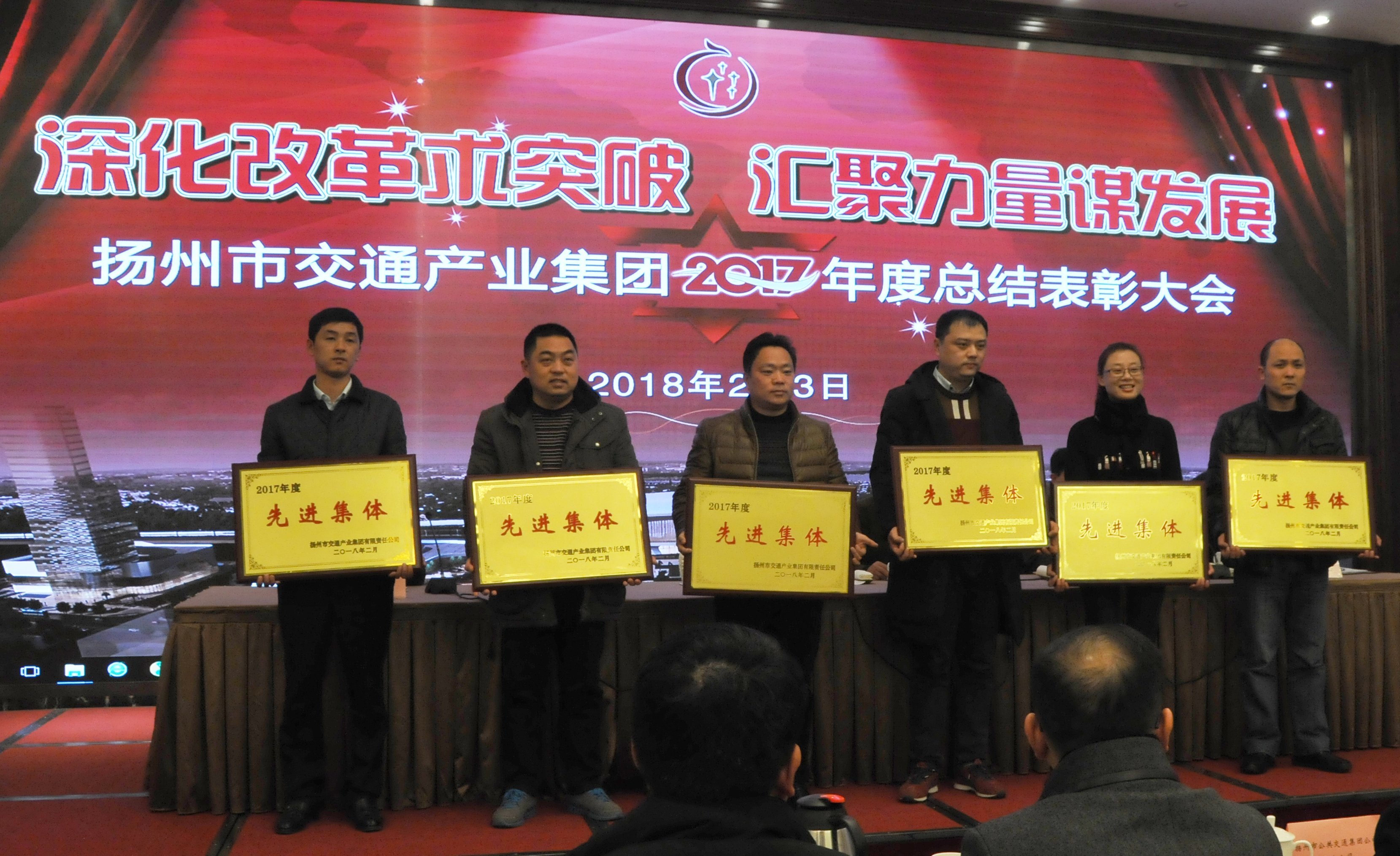 2月3日下午,揚(yáng)州市交通產(chǎn)業(yè)集團(tuán)2017年度總結(jié)表彰大會(huì)在二十四橋賓館玫瑰廳召開。交通產(chǎn)業(yè)集團(tuán)領(lǐng)導(dǎo)班子及來自產(chǎn)業(yè)集團(tuán)各單位的領(lǐng)導(dǎo)、中層干部、青年骨干、受表彰人員200余人參加會(huì)議。揚(yáng)汽集團(tuán)揚(yáng)州站、東站、定制公司3家單位榮獲先進(jìn)集體,王甜甜等16人榮獲先進(jìn)個(gè)人。