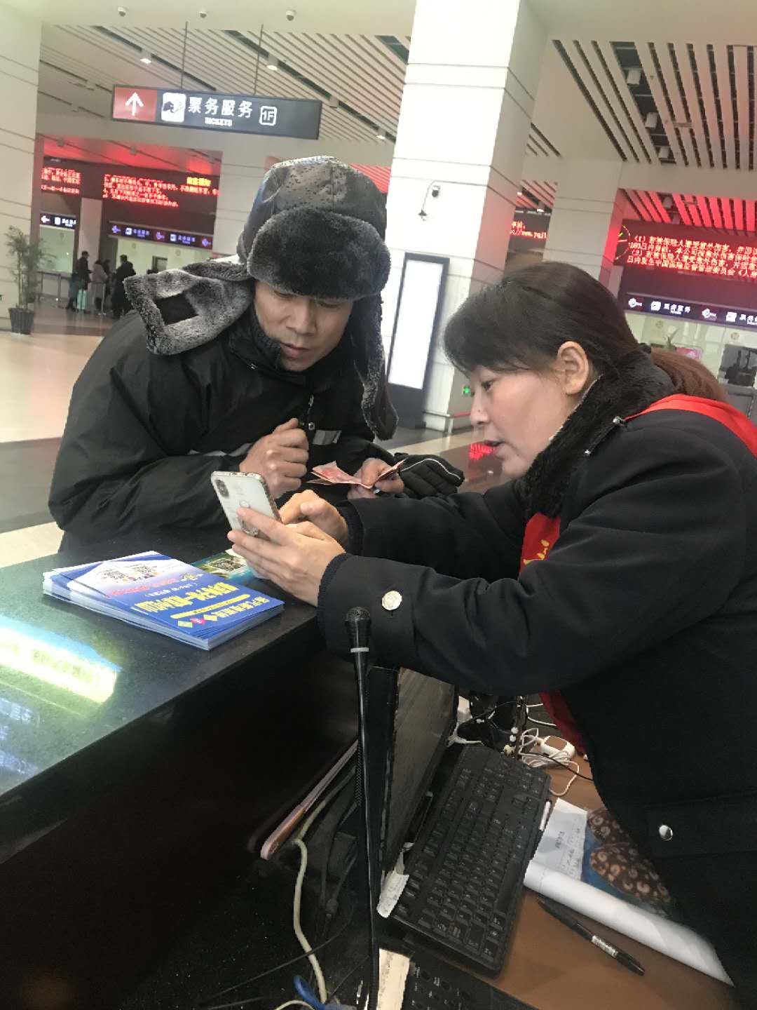 21位在揚州某工地打工的安徽無為縣農(nóng)民工,昨天工地開始放假,于是今天大家集中提前返鄉(xiāng)。得知情況后,班長尹海霞便帶領(lǐng)工作人員熱情地幫助大家購買起票來,為節(jié)約因排隊造成的時間緊張,尹班長隨即吩咐班組人員利用工友的手機(jī),幫助農(nóng)民工進(jìn)行網(wǎng)上購票,不到二十分鐘,解決了農(nóng)民兄弟的購票問題。隨行中一位已在揚州打工三個年頭的“小工頭”夏師傅感慨萬千,動情地說:“沒想到今年春運前買車票這么容易,多虧了車站工作人員的幫忙”。