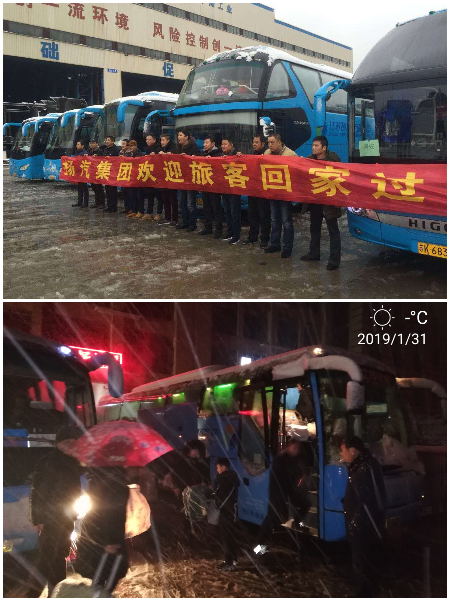 另外當(dāng)天早晨6點(diǎn)不到,在紛飛的雪花中,揚(yáng)州杭集晨笑刷業(yè)、江都安凱汽車(chē)制造、中海公司的260余名農(nóng)民工朋友也坐上了東站的“返鄉(xiāng)直通車(chē)”,歡歡喜喜的回家過(guò)年。
