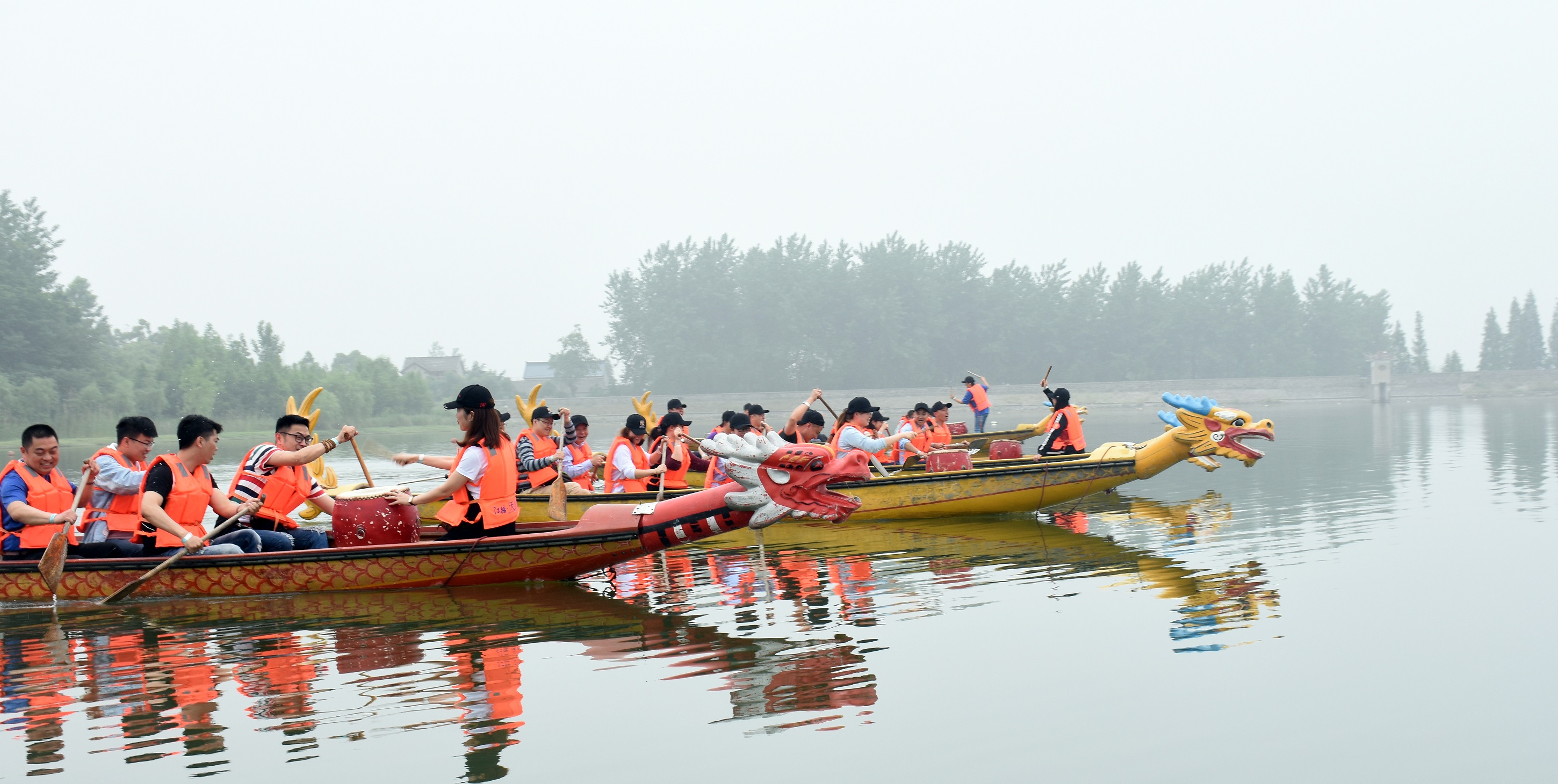 上午首個(gè)挑戰(zhàn)活動(dòng)是劃龍舟比賽。參加人員共分成4個(gè)小隊(duì),經(jīng)過(guò)簡(jiǎn)短的水上練習(xí)后,隨著裁判一聲令響,四條龍舟劈波斬浪,隊(duì)員們擼起袖子、甩開(kāi)膀子、擊鼓號(hào)令,揮橈劃槳,近500米的賽道上,大家同舟共濟(jì)、奮勇?tīng)?zhēng)先。