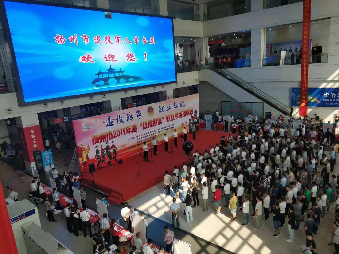 8月17日上午,揚(yáng)州市2019年度“雙擁創(chuàng)建”就業(yè)專場(chǎng)招聘會(huì)在揚(yáng)州西部客運(yùn)樞紐揚(yáng)州汽車站一樓大廳舉辦。會(huì)場(chǎng)設(shè)置50多個(gè)招聘席位,計(jì)劃安排1500個(gè)就業(yè)崗位,1200余名退役軍人及隨軍家屬參加現(xiàn)場(chǎng)招聘。招聘活動(dòng)由揚(yáng)州市雙擁領(lǐng)導(dǎo)小組、揚(yáng)州市退役軍人事務(wù)局、揚(yáng)州軍分區(qū)、揚(yáng)州市人社局聯(lián)合主辦,旨在拓寬退役軍人就業(yè)渠道,為退役軍人和企業(yè)之間搭建起互通橋梁。