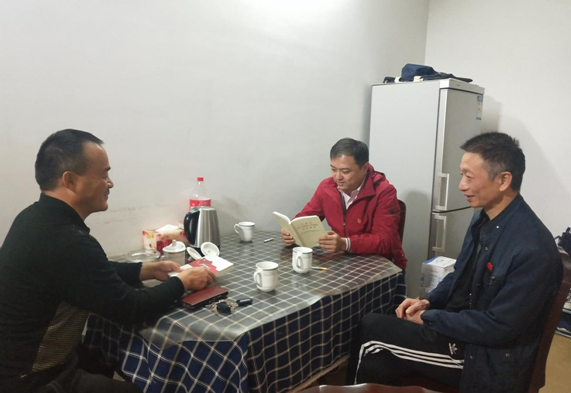 郭宏祥是支部一名老黨員,身患疾病在家休養(yǎng),主題教育開始后,該黨員多次因無法參加組織活動而向支部表達歉意。為此,旅游出租支部書記趙磊主動與該同志結(jié)對,為他“送黨課、送教材”。11月3日,旅游出租支部一行三人攜帶慰問品和主題教育相關教材來到郭宏祥家,在送去組織親切慰問的同時,向其發(fā)放了《習近平關于“不忘初心、牢記使命”重要論述選編》、《習近平新時代中國特色社會主義思想學習綱要》、主題教育應知應會30條口袋讀本以及學習筆記本。
