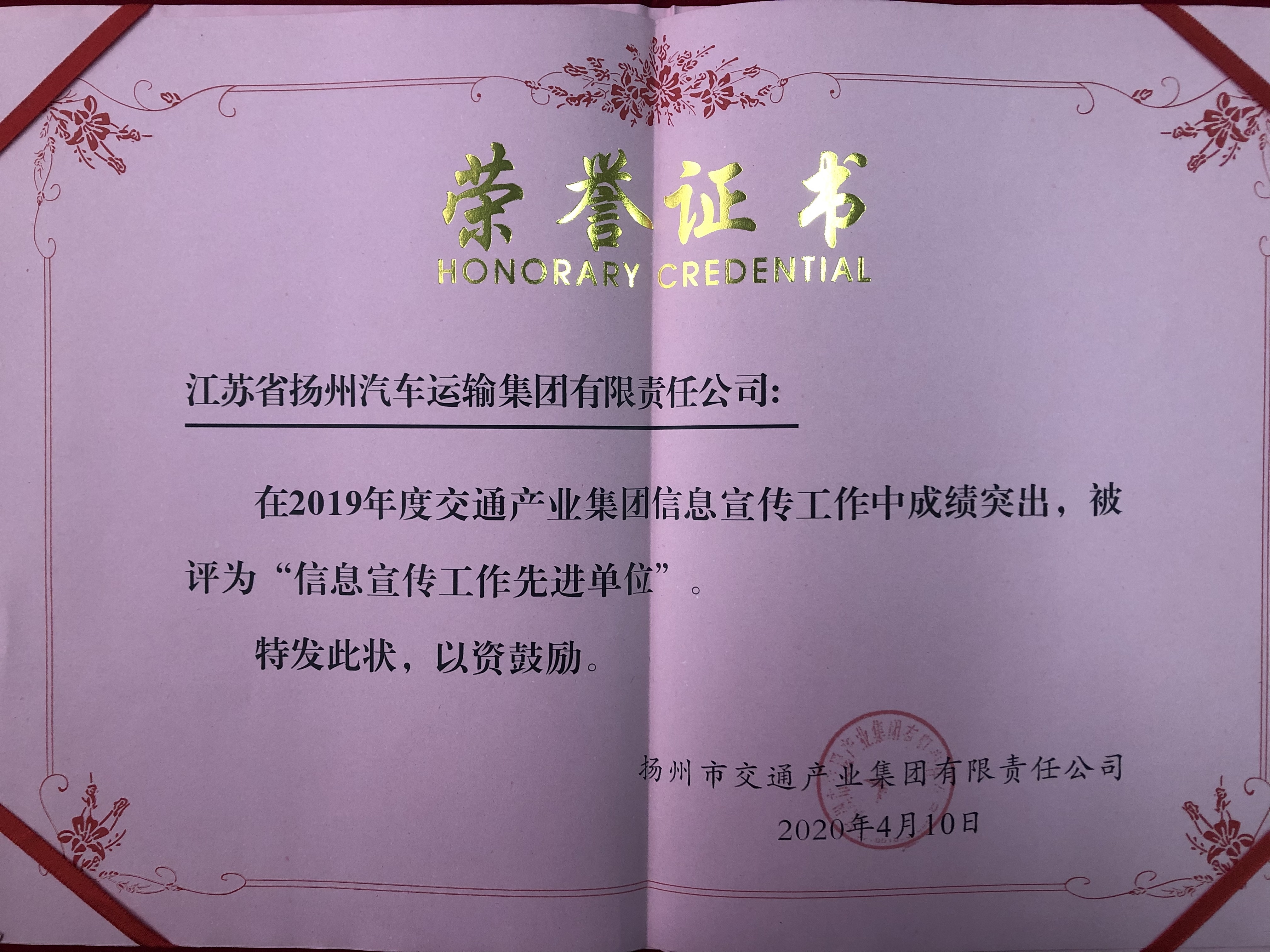 4月10日下午,市交通產(chǎn)業(yè)集團召開信息宣傳工作會,會上表彰了2019年度信息宣傳工作中的先進集體和個人,揚汽集團獲得“信息宣傳工作先進單位”稱號;另有三名同志分別獲“信息宣傳工作先進個人”和《揚州交通產(chǎn)業(yè)集團年鑒》(2018)優(yōu)秀撰稿二等獎。