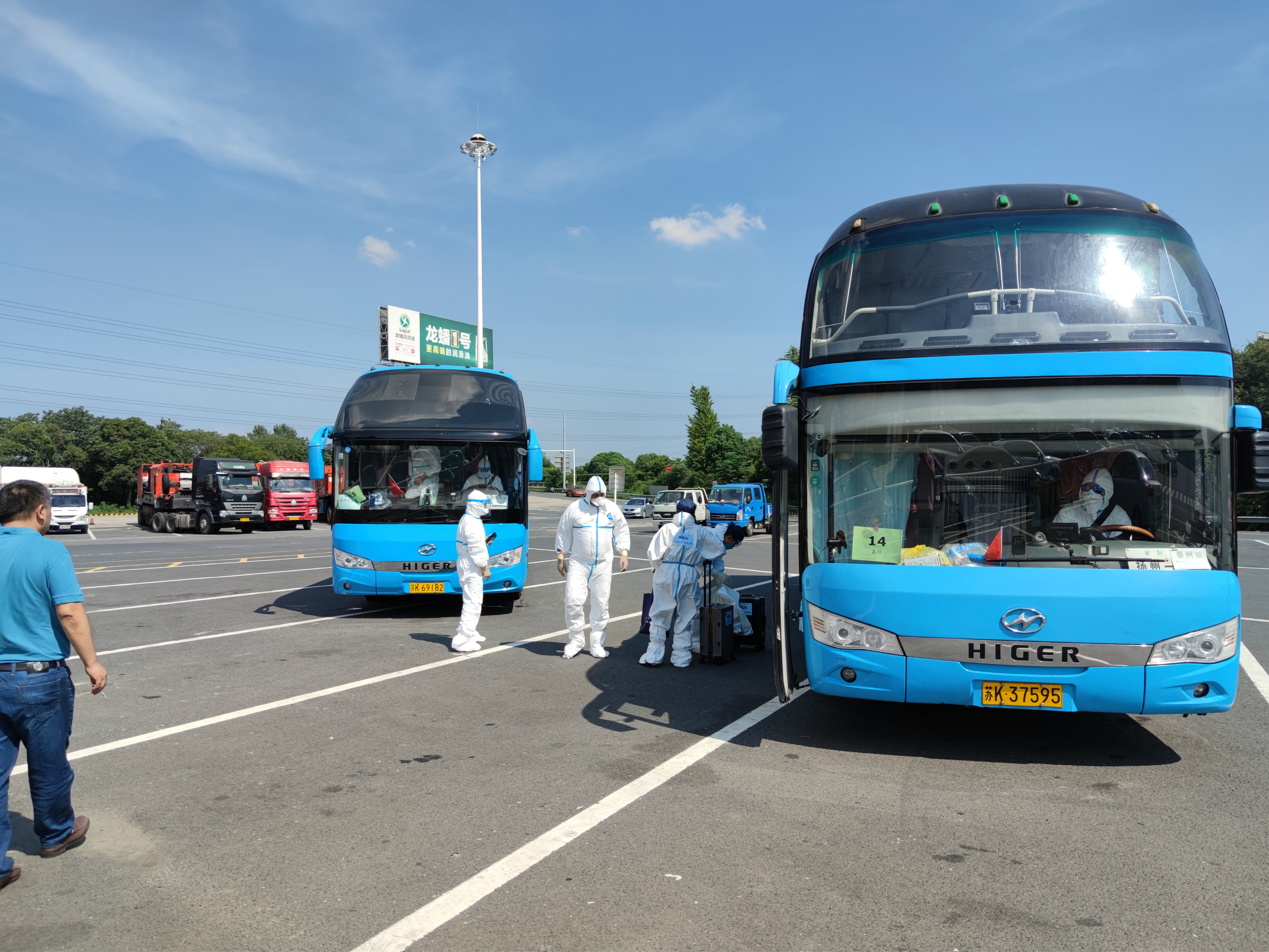當(dāng)天氣溫達(dá)到36度,機(jī)坪溫度更是超過50度,在這種酷暑下,駕駛員全身穿戴密閉的防護(hù)服,對行車安全是巨大的挑戰(zhàn)。龔宇峰董事長趕赴現(xiàn)場,再次對駕駛員抗高溫,保安全進(jìn)行了交代。中午11時40分,首批車輛從機(jī)場出發(fā),至14時11分最后一批車出發(fā),將二百多名境外返揚人員運送至相關(guān)酒店。16時50分,所有車輛圓滿完成任務(wù),回到指定地點,接受消毒和檢測。