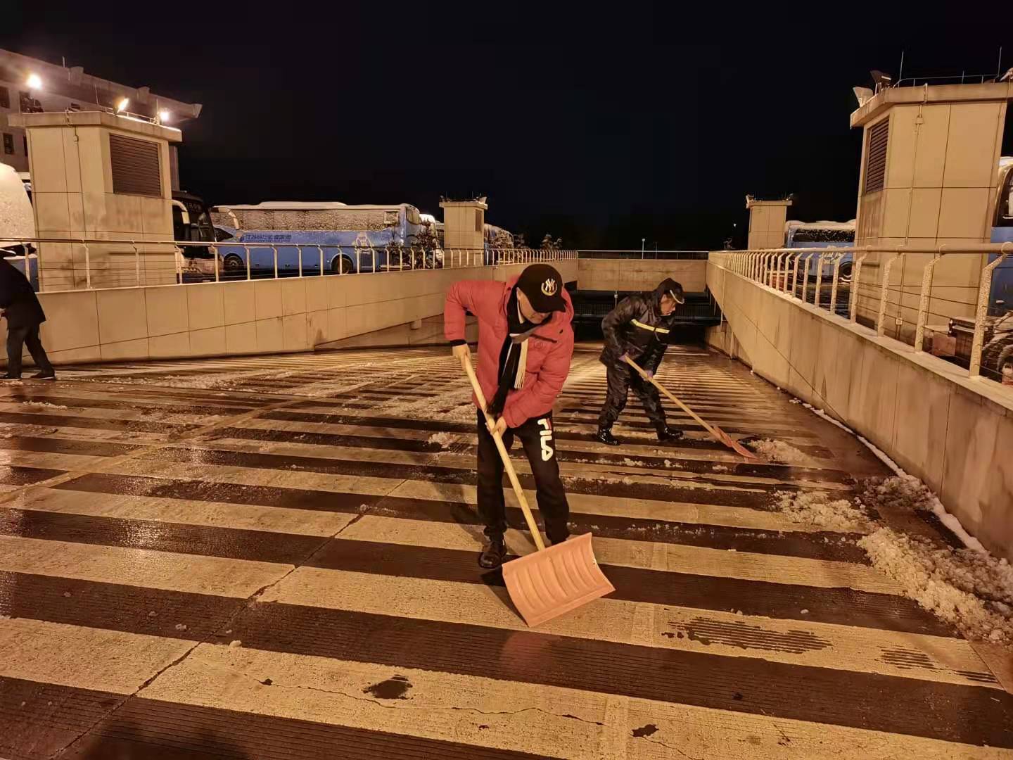 大雪過(guò)后,融雪除冰是旅客出行的保障,車站連夜安排職工、物業(yè)根據(jù)雪情實(shí)施作業(yè),確保道路通暢。