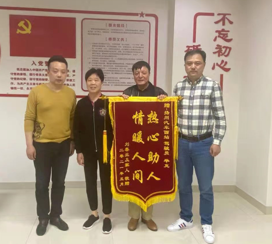 5月6日下午,張先生和劉女士風(fēng)塵仆仆的來(lái)到揚(yáng)汽定制公司,為表達(dá)對(duì)高郵健康定制線(xiàn)畢克師傅的謝意,老人們手捧錦旗以表感謝之情。