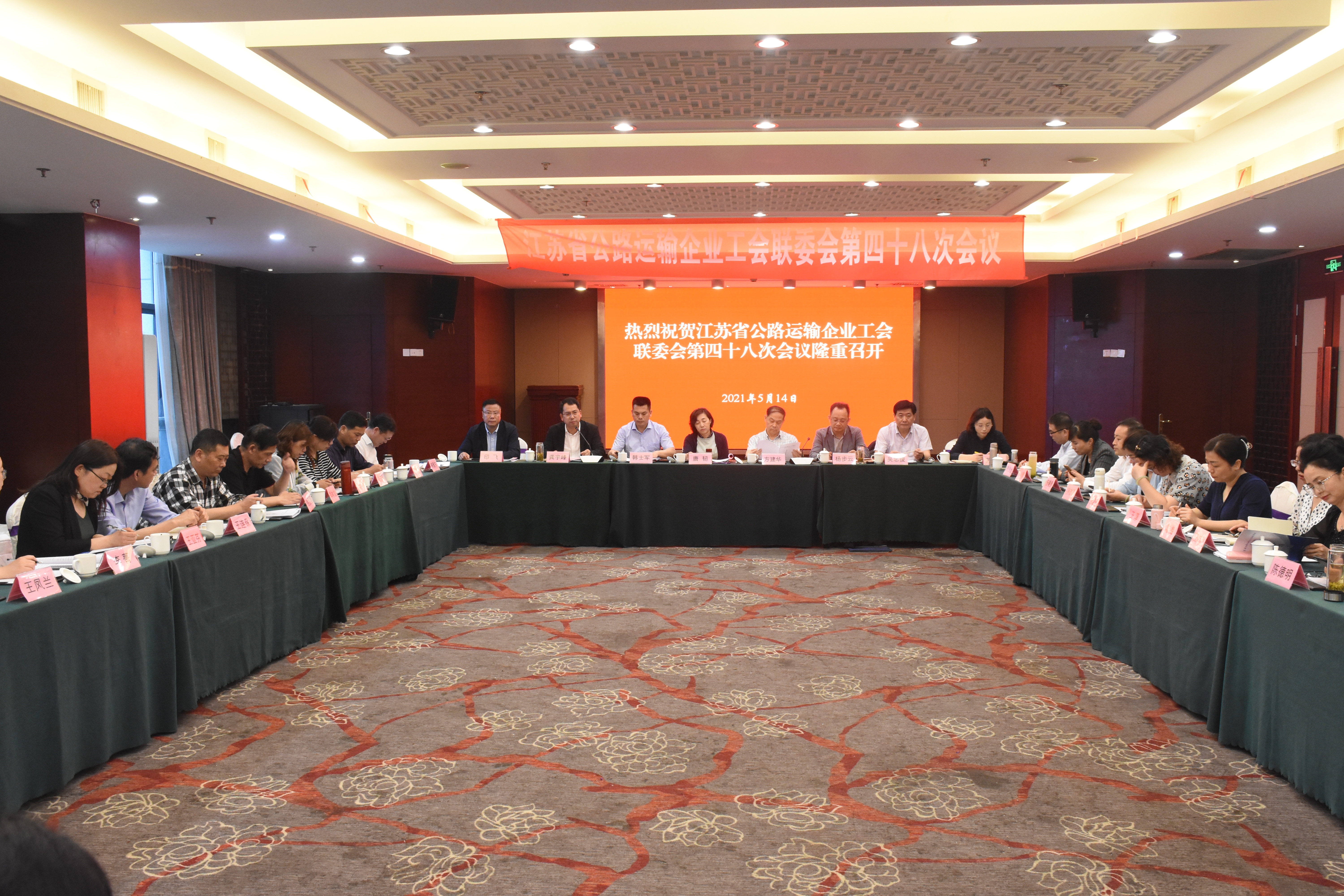 5月14-15日,江蘇省公路運輸企業(yè)工會聯(lián)委會第四十八次會議在揚州召開。江蘇省交通運輸廳副廳長方建華、工會主任唐韌、工會科長蘇玲玲,揚州市交通局副局長楊步云、工會主席印飛、揚州市總工會副主席韓士軍,交通產業(yè)集團副總經理、工會主席吳忠俊,交通產業(yè)集團副總經理、揚汽集團黨委書記、董事長龔宇峰,揚汽集團黨委副書記、紀委書記、工會主席顧懷,以及江蘇省公路運輸15家企業(yè)代表等共計 40余人出席了本次大會。