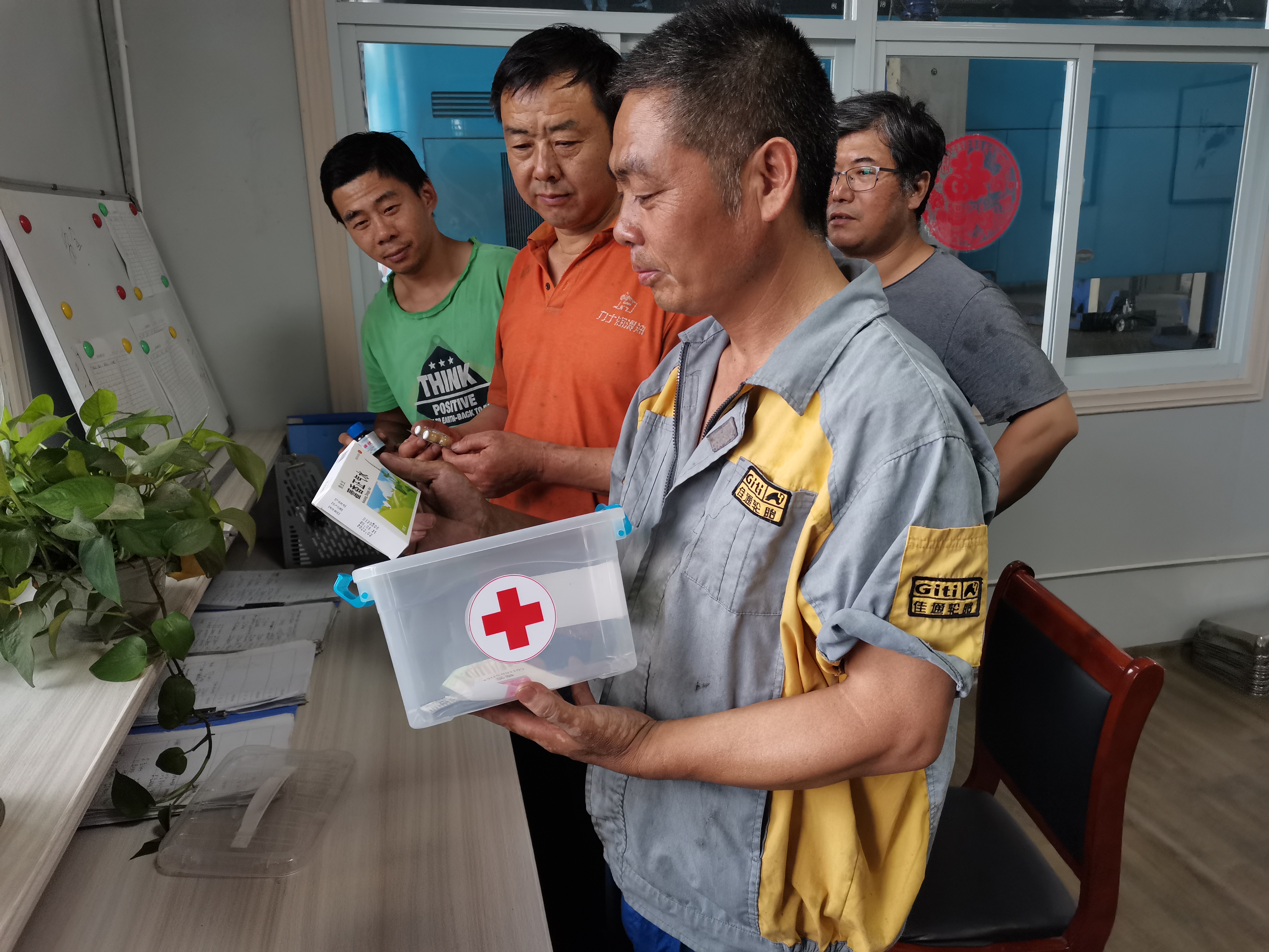 修理廠黨支部針對(duì)職工老齡化、“三高”人員普遍存在等問(wèn)題投入了關(guān)注和關(guān)懷,給各部門配置了應(yīng)急醫(yī)藥箱,藥箱內(nèi)配備有救心丸、人丹、十滴水、創(chuàng)口貼、醫(yī)用酒精等藥品。同時(shí),為了切實(shí)發(fā)揮“應(yīng)急醫(yī)藥箱”的作用,還明確專人對(duì)醫(yī)藥箱進(jìn)行管理,定期更換或補(bǔ)充所需藥品。