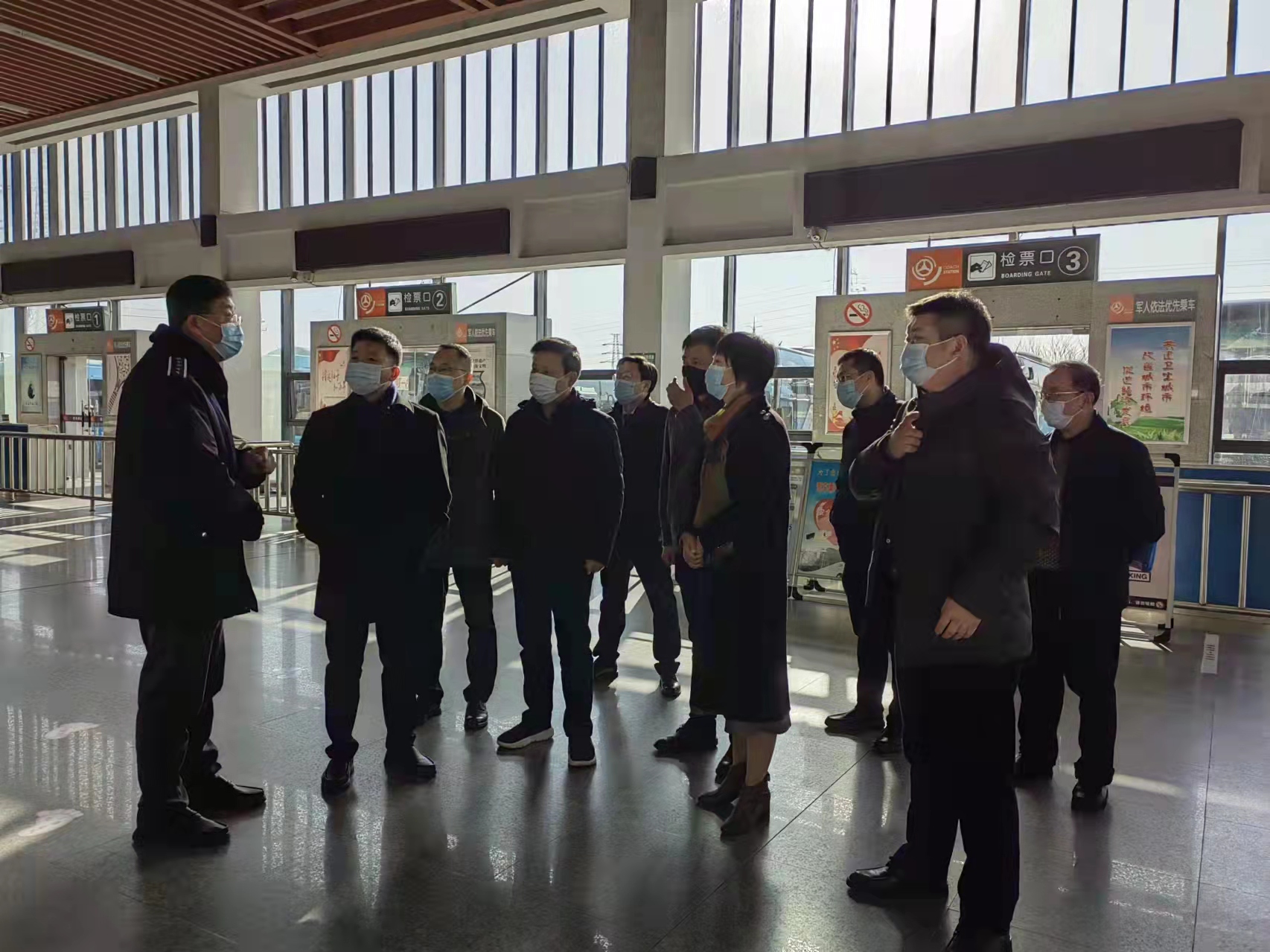 朱定金強調(diào),春節(jié)假期接近尾聲,返程高峰即將到來,車站旅客人數(shù)將有所增加,值班值守的人員要繼續(xù)堅守崗位,做好個人防護,同時注意防寒防暖。車站要扎實做好春節(jié)各項安全防范工作,牢固樹立客運站的安全發(fā)展理念,疫情防控工作時刻不能松懈,嚴格按照規(guī)定對場站、車輛進行通風(fēng)消毒,嚴查旅客健康碼和體溫檢測,提醒旅客全程規(guī)范佩戴口站、落實好“一米線”等要求。常態(tài)化疫情防控下的春運,車站服務(wù)不能打折扣,用心守護好江都的大門,讓旅客出行變的更有溫度。