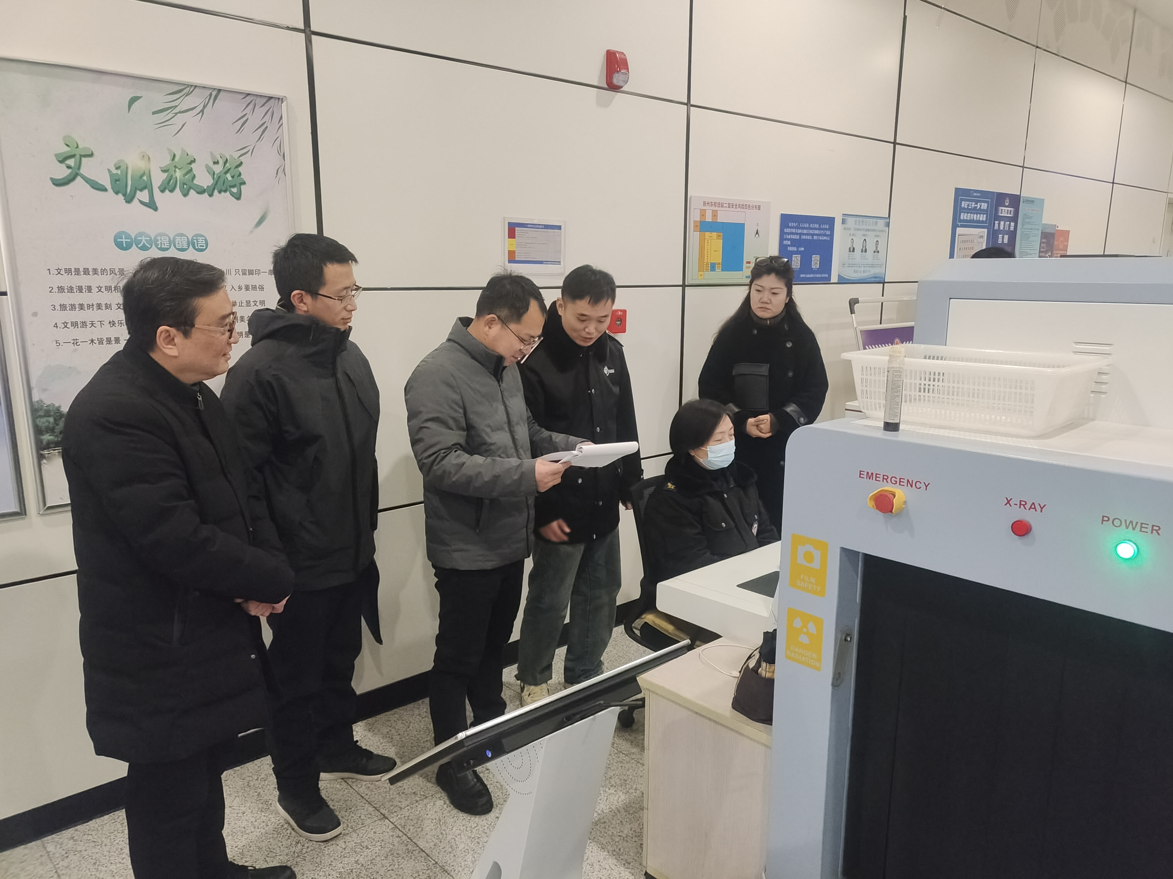 龔宇峰一行先后實地查看了售票、安檢、發(fā)車等重點區(qū)域,仔細翻閱了危險品查堵、消防點檢等臺賬記錄,詳細聽取了車站負責人關于春運期間客流研判、班次協(xié)調、安全防范、服務保障等工作匯報。