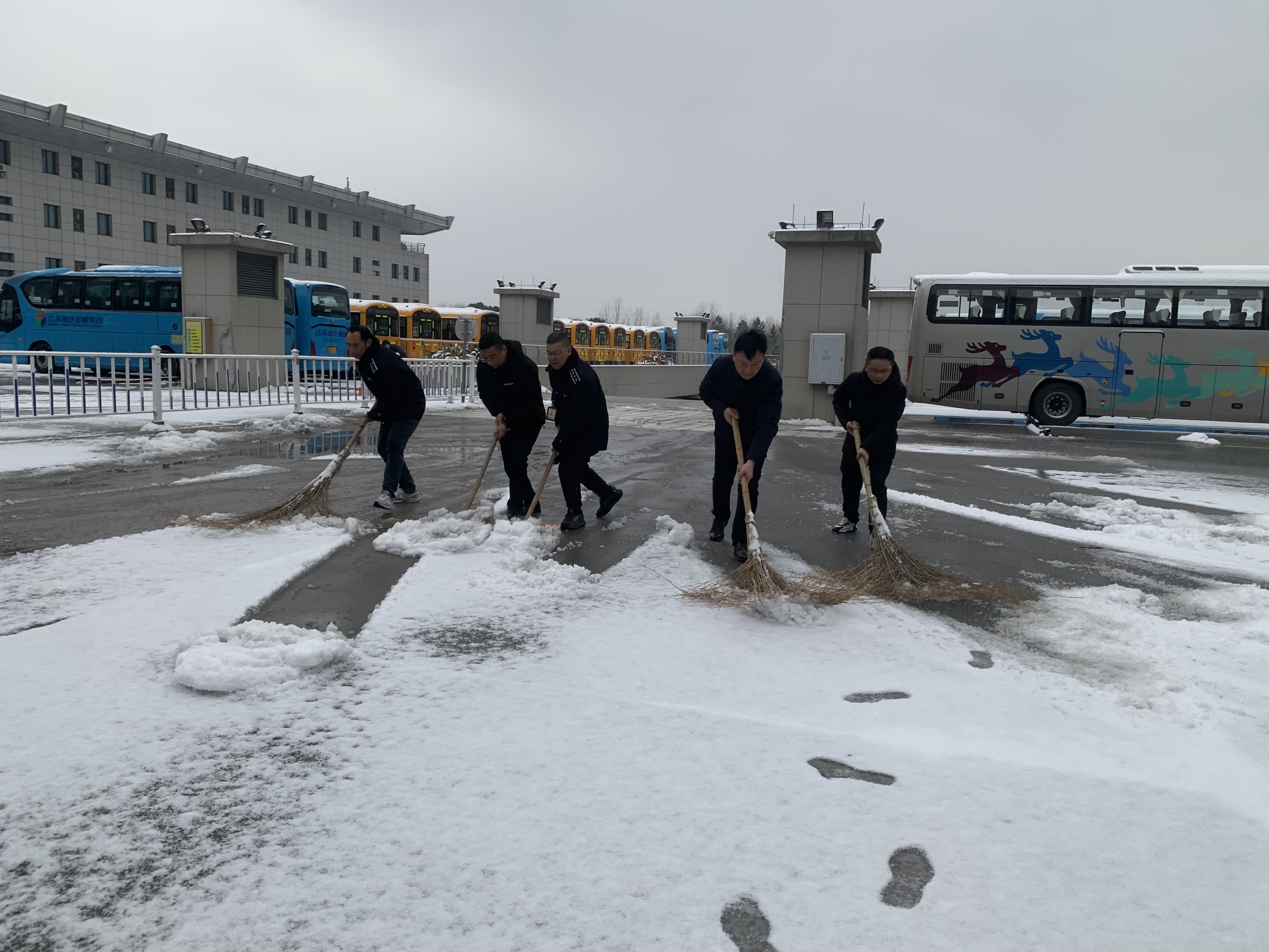 在揚州汽車站,集團平安志愿者分會聯(lián)合團委,組織青年職工志愿者前往車站,在站前廣場、發(fā)車平臺、進出站口等重點部位清理積雪、撒布融雪劑和鋪設(shè)防滑草墊,大家相互配合、齊心協(xié)力、干勁十足,全面開展除雪鏟冰工作,為廣大旅客安全、便捷出行做好后勤保障。
