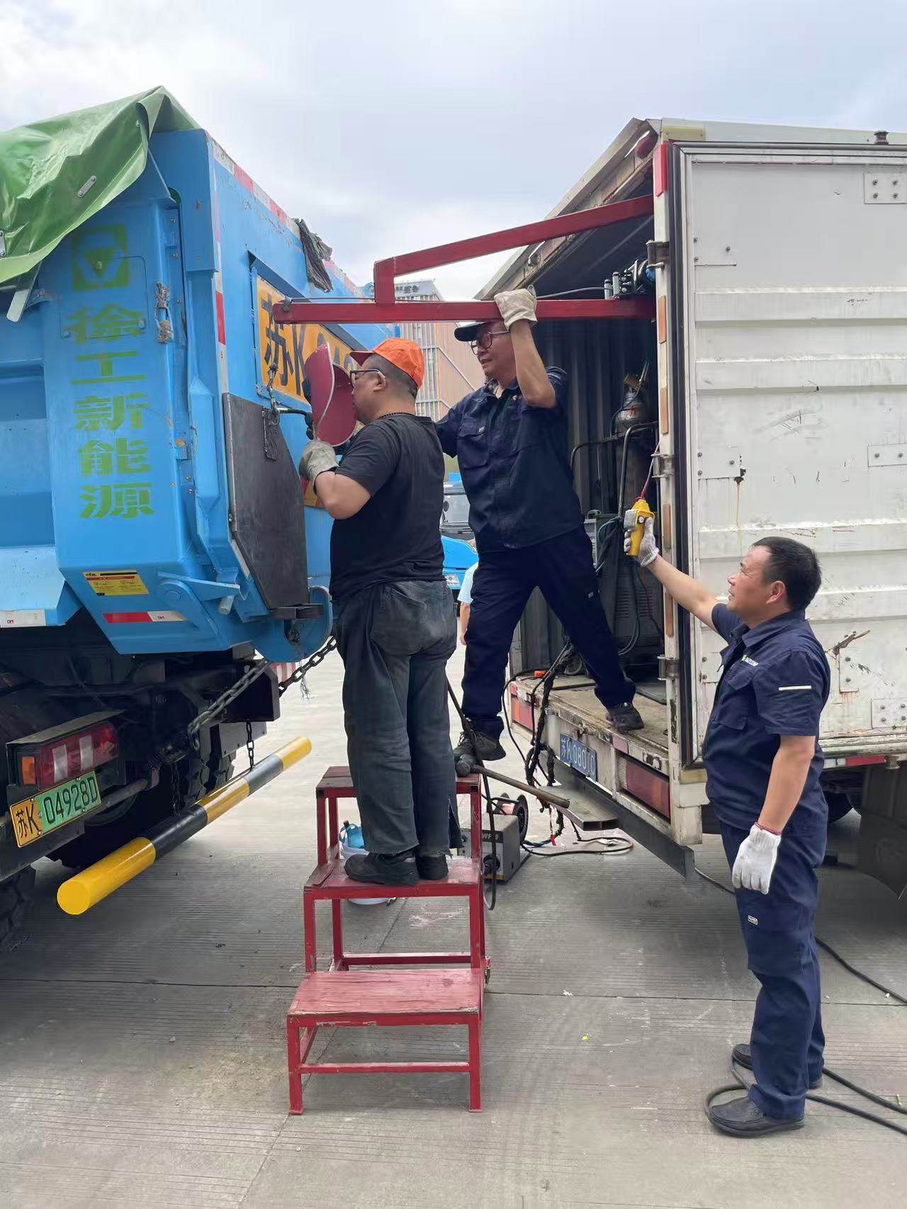 自首批新能源渣土車正式投入運(yùn)營(yíng)以來,通過實(shí)際使用后,準(zhǔn)備對(duì)車輛安全性能進(jìn)行升級(jí)改造,加固后艙門、加裝防撞梁及改造燈光系統(tǒng)。揚(yáng)汽修理廠接到兄弟單位的需求,迅速行動(dòng),組織技術(shù)骨干成立專項(xiàng)小組,第一時(shí)間趕赴現(xiàn)場(chǎng)開展定制化改造。